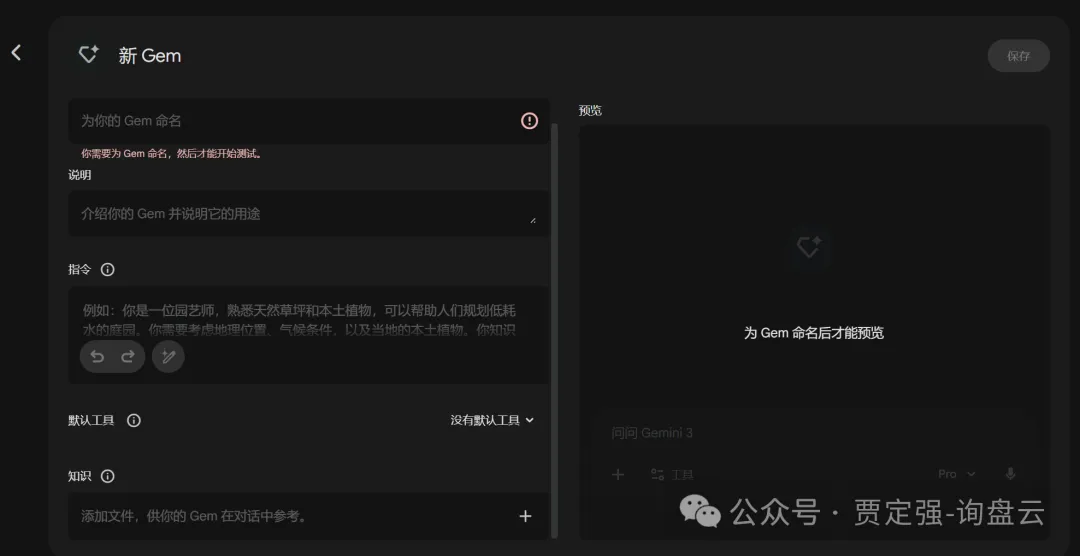 Standard Gem (标准版 Gem)它的本质是:角色扮演 (Role-Play)当你创建一个普通的 Gem,你主要是在写一段“系统提示词”。你告诉它:“你是一个健身教练”或者“你是一个资深翻译”。它的极限:无论它多么聪明,它主要还是在跟你“一来一回”地聊天。它的输出形式主要是文本。